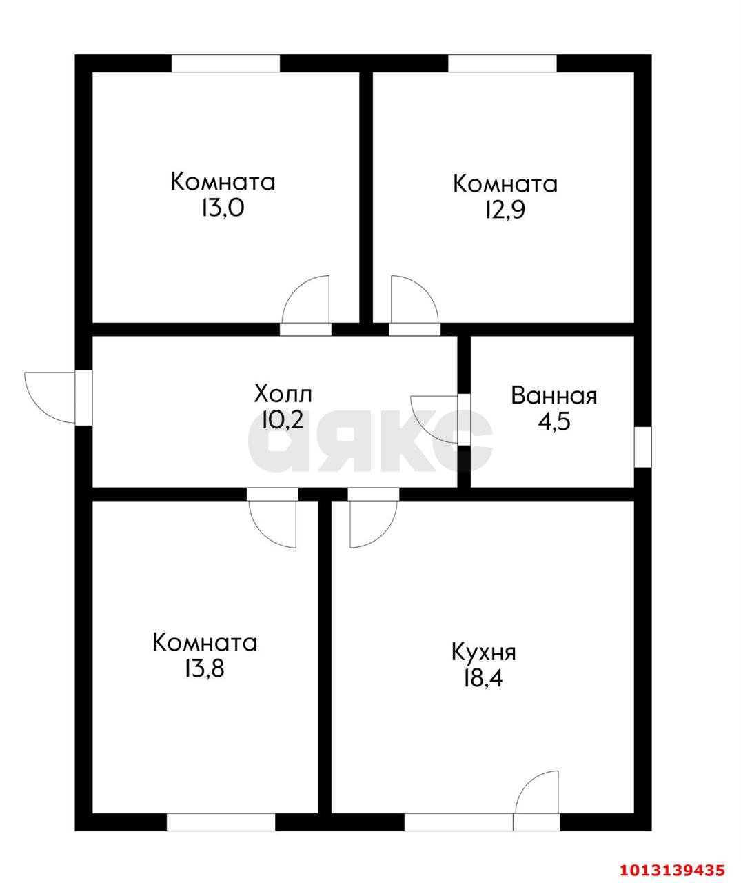 Планировка просторная кухня 18,4м2 с выходом на улицу! Жилые комнаты 13,8м2 и две комнаты по 13м". Совмещенный санузел 4,5м2!
