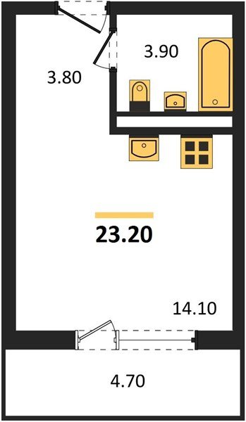 Студия 23 м²